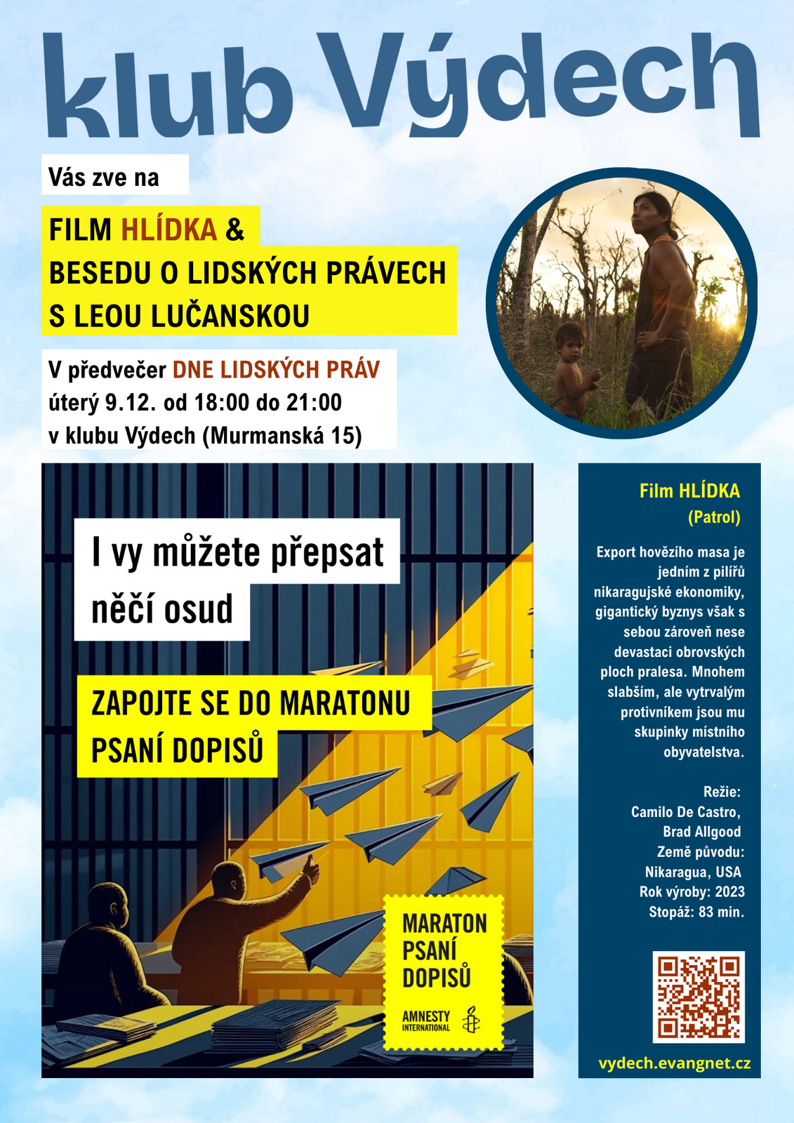 Film Hlídka a beseda o lidských právech s Leou Lučanskou, úterý 9.12.